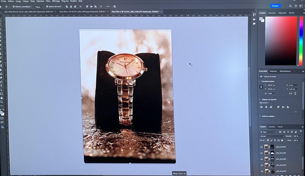 Traitement des photos dans Lightroom et fusion des images dans Photoshop.